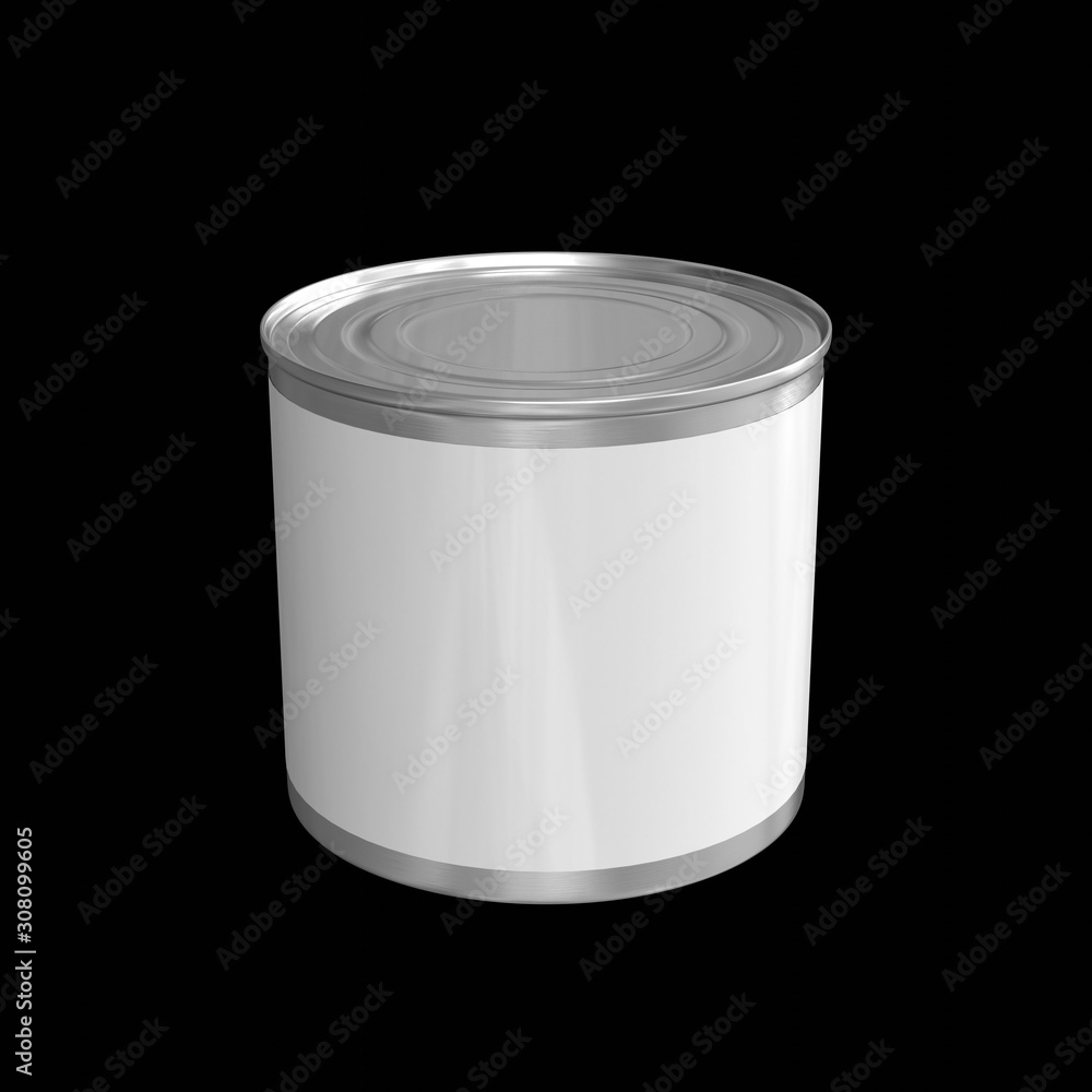 Big tin can mockup. Blank metal food container isolated on black Very well made.
