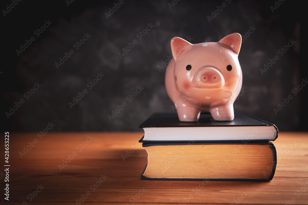 piggy bank with a book on the table Stock Photo Adobe Stock Very well made.