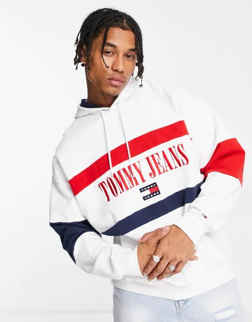 Tommy Jeans skater fit archive logo color block hoodie in white Very well made.