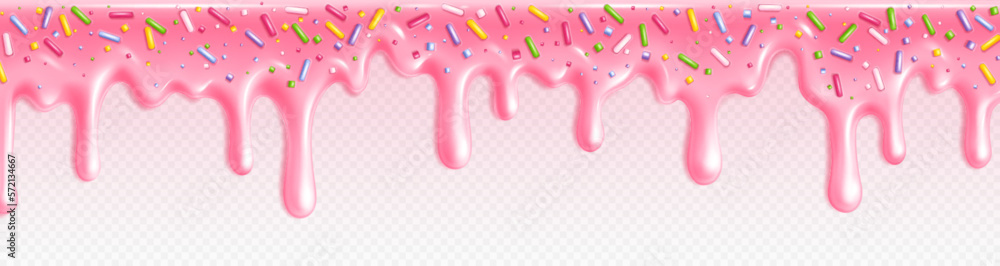 Pink donut icing glaze. Realistic isolated candy melt drip border Very well made.