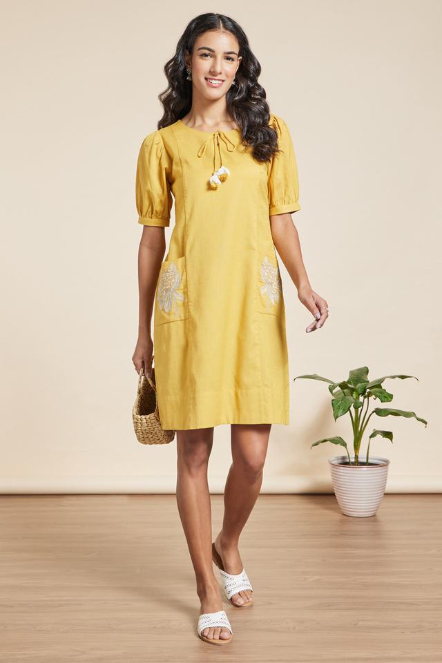 Embroidered Round Neck Cotton Flex Women s Knee Length Dress Very well made.