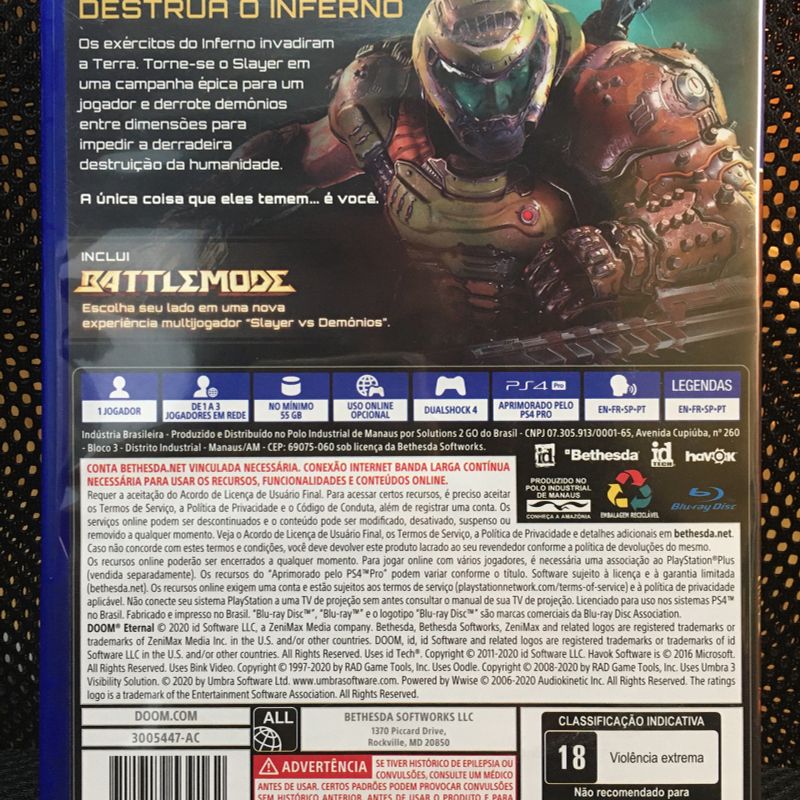 Jogo Doom Eternal Ps4 Jogo de Videogame Ps4 Usado 73893375 Very well made.