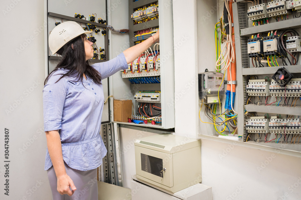 electricity engineer female working check service high voltage Very well made.