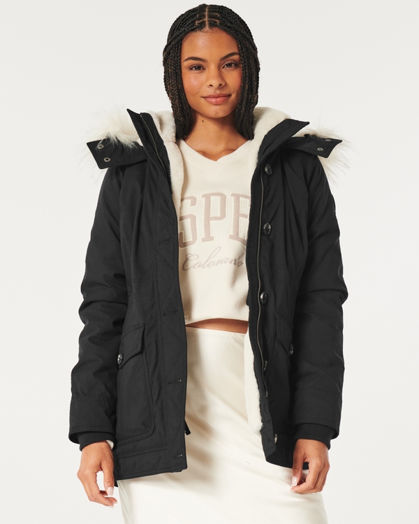 Womens Hollister by Abercrombie Fitch Water Resistant Fur Parka Very well made.