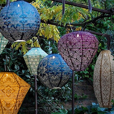 Blue Round Glass Hanging Lantern Round Solar Lantern Very well made.