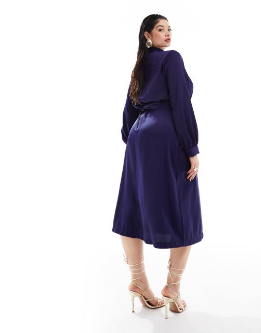 Closet London Plus Robe mi longue col montant et ceinture Bleu nuit Very well made.