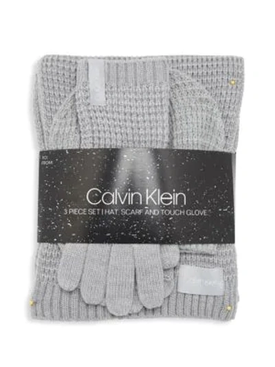 Calvin Klein 3 Piece Waffle Knit Hat Scarf Touch Gloves Set on Very well made.