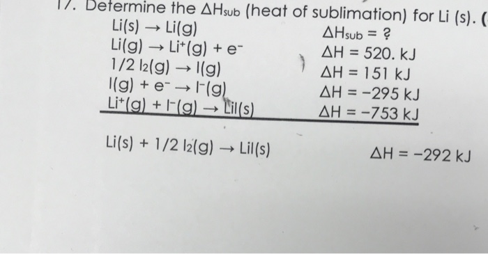 Solved 17. Determine the Hsub heat of sublimation for Li Very well made.
